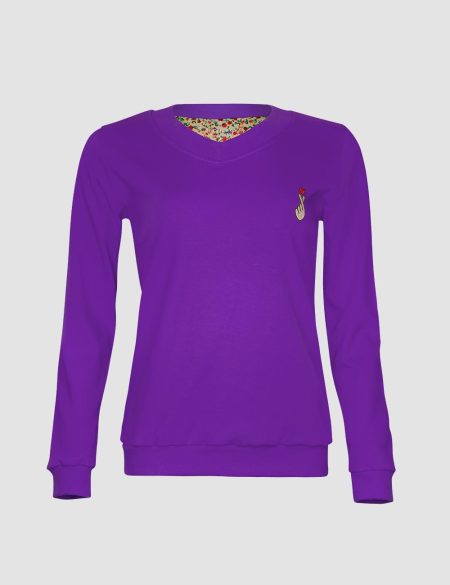 بلوز زنانه یقه گرد گلدوزی سه گل بابونه