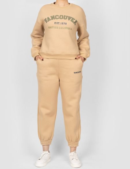 سویشرت کراپ زنانه بیسکویتی بهدیس