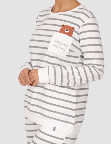 بلوز زنانه جیب دار راه راه خرس کوچولو