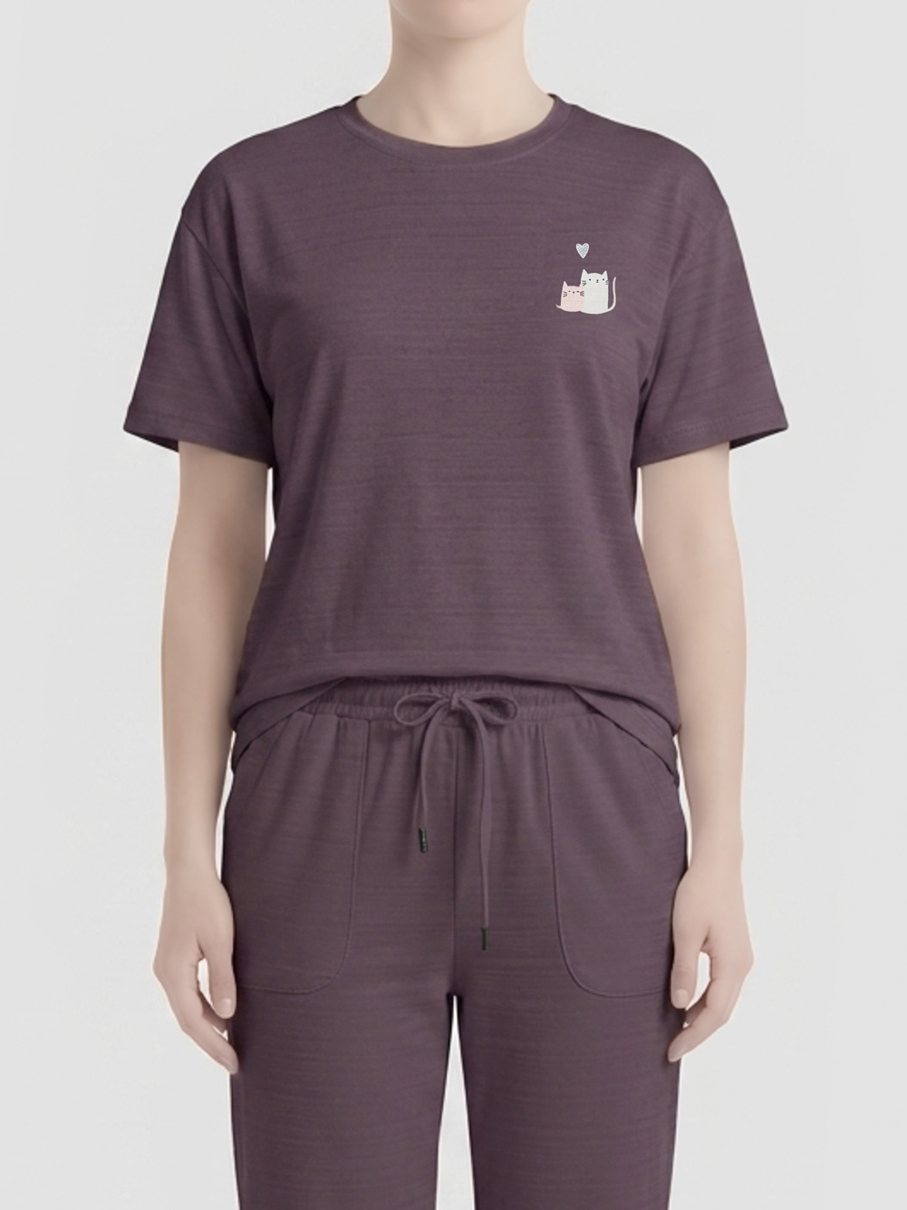 | سایز تیشرت زنانه چاپدار گربه و قلب | عرض سرشانه | دور سینه | دور بازو | قد آستین | قد تیشرت |