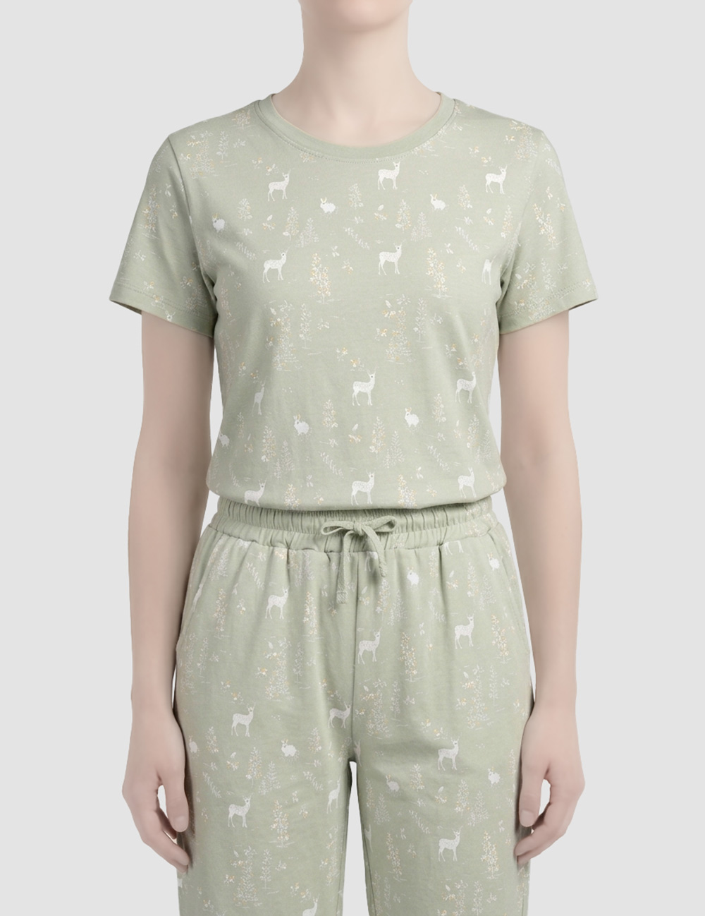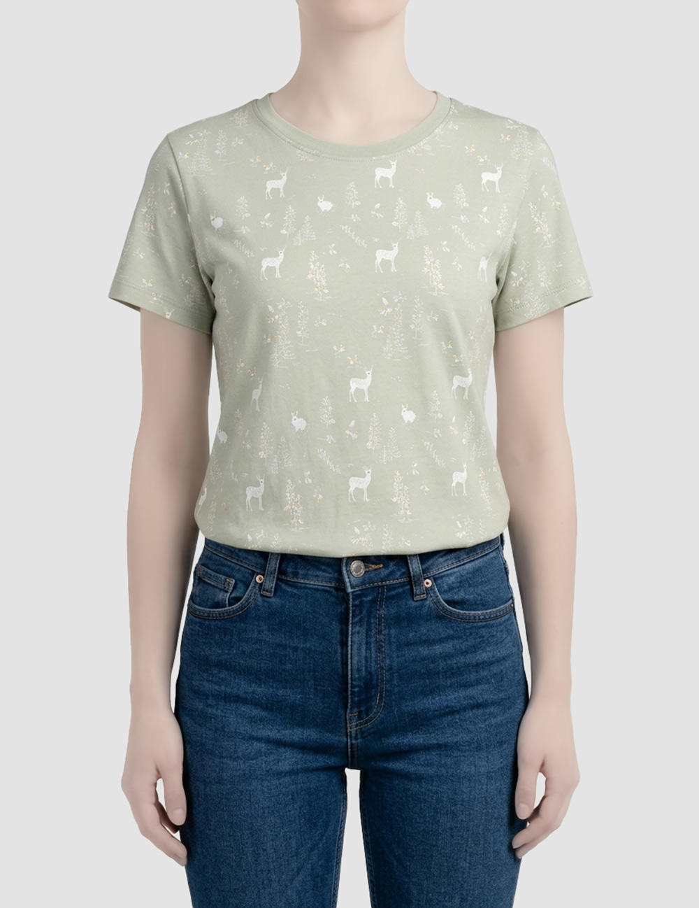تیشرت گوزن را با شلوار جین ساده یا شلوارک و کتانی سفید ست کنید تا تمرکز استایل روی طرح خاص لباس باقی بماند و ظاهری شیک و متفاوت داشته باشید.