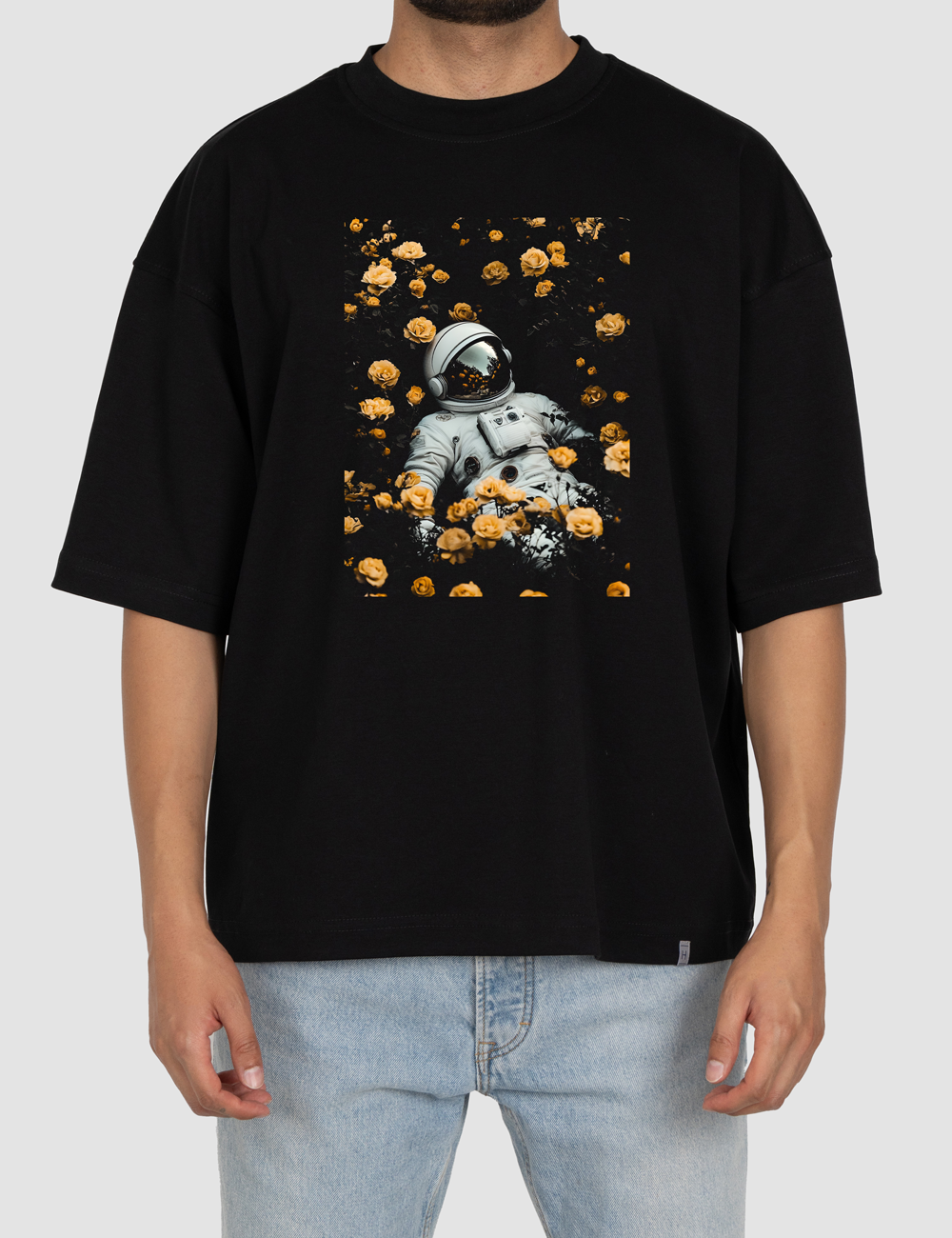 تیشرت باکسی فضانورد و گل