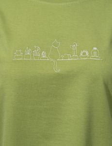 تیشرت زنانه گلدوزی گربه و کاکتوس