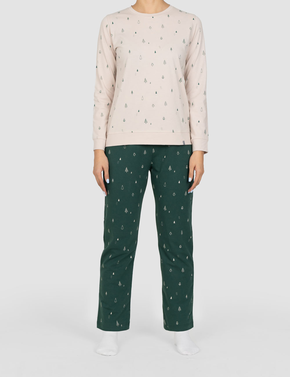 شلوار زنانه چاپدار طرح کریسمس، با طراحی زیبا و رنگ سبز یشمی، انتخابی جذاب و راحت برای استایلهای روزمره و خانگی است. چاپ درختان کریسمس با جزئیات زیبا روی شلوار، جلوهای شاد و پرانرژی به آن بخشیده است. جنس گلکسی نرم و راحت این شلوار، مناسب برای استفاده در تمام فصول است و راحتی را در طول روز به شما میدهد.