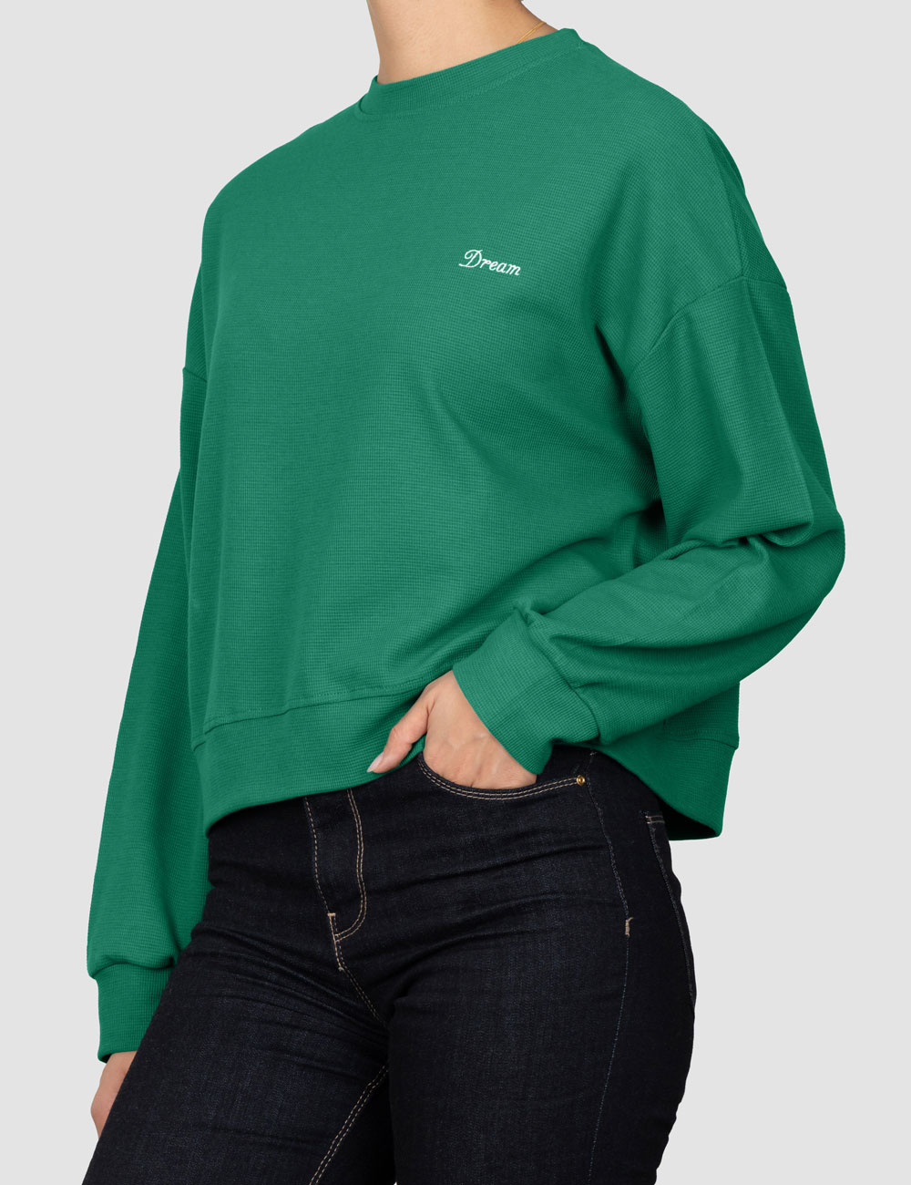 بلوز زنانه گلدوزی دلنوا از برند آرتی، با طراحی ساده و ظریف، گزینهای ایدهآل برای استایلهای روزمره در فصلهای پاییز و زمستان است. گلدوزی کوچک کلمهی Dream روی سینه، جلوهای مینیمال و خاص به لباس میدهد.