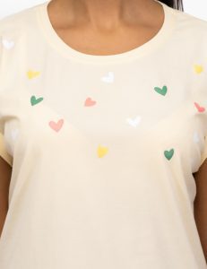 | سایزتیشرت آستین پاکتی قلبی | دور سینه | قد تیشرت |