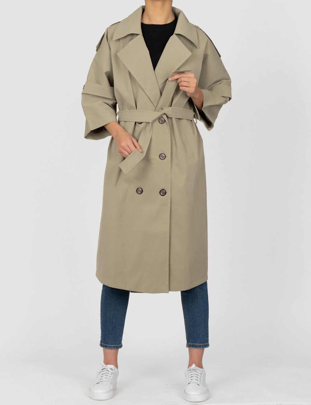 بارانی زنانه نیکیتا از برند آرتی، با طراحی کلاسیک و تنخور آزاد، یکی از انتخابهای خاص برای استایلهای پاییزی و زمستانی است. پارچهی کتان با بافت نرم و مات، ظاهری شیک و مینیمال به آن بخشیده و کمربند همجنسش باعث میشود بتوان آن را هم باز و هم بسته استایل کرد.