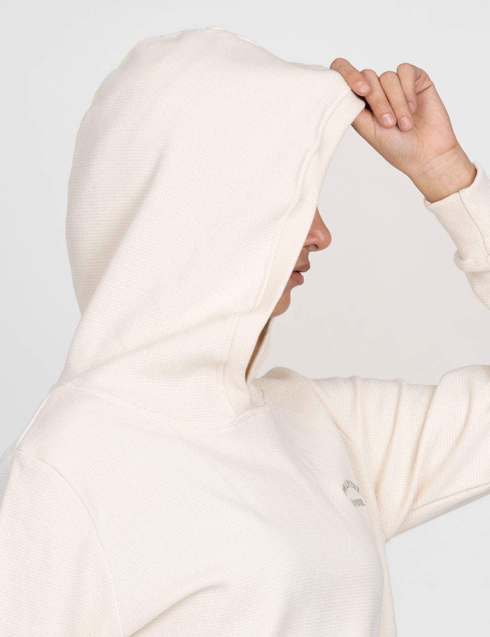 برای یک استایل راحت و مینیمال، این هودی را با شلوار بیسکویتی همجنس یا شلوار کتان فیت آزاد ترکیب کنید. در روزهای سردتر میتوانید با کت پفدار یا بارانی سبک آن را لایهگذاری کنید.