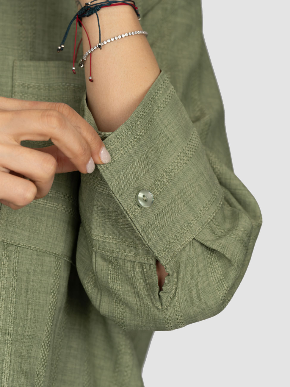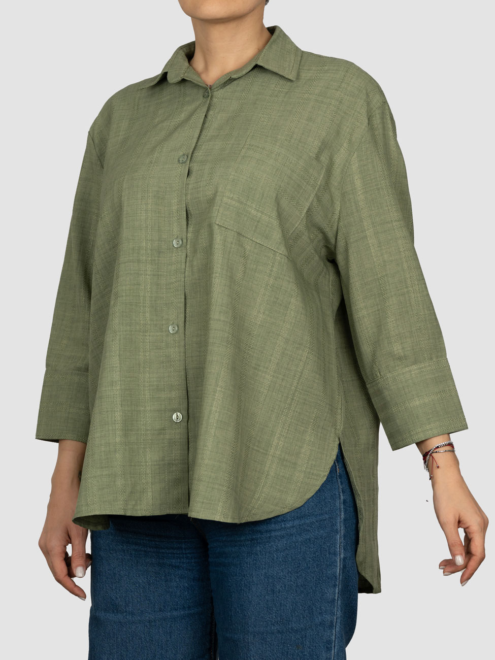 شومیز زنانه تمام دکمه سارا، با طراحی تمامدکمه و استایل ساده، انتخابی شیک و کاربردی برای استفاده در تمام فصول است. مدل جلو دکمهدار این شومیز، امکان استفاده بهصورت باز یا بسته را فراهم میکند و فرم آزاد آن، راحتی و تنخور زیبایی ایجاد میکند.