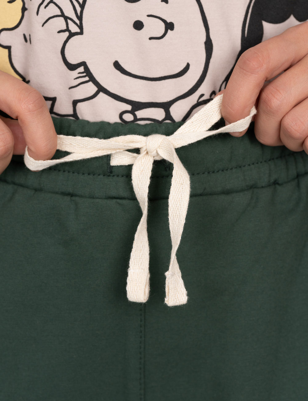 شلوار زنانه اسنوپی و دوستان، این شلوار راحتی، با جنس پنبه‌ای نرم و تنفس‌پذیر، انتخابی عالی برای استایل‌های خانگی، روزمره و ست‌های اسپرت است. رنگ سبز خاص و آرامش‌بخش آن به‌راحتی با بلوزهای چاپی و ساده ست می‌شود و طرح مینیمال اسنوپی، حس جذاب و دوست‌داشتنی به استایل می‌دهد.