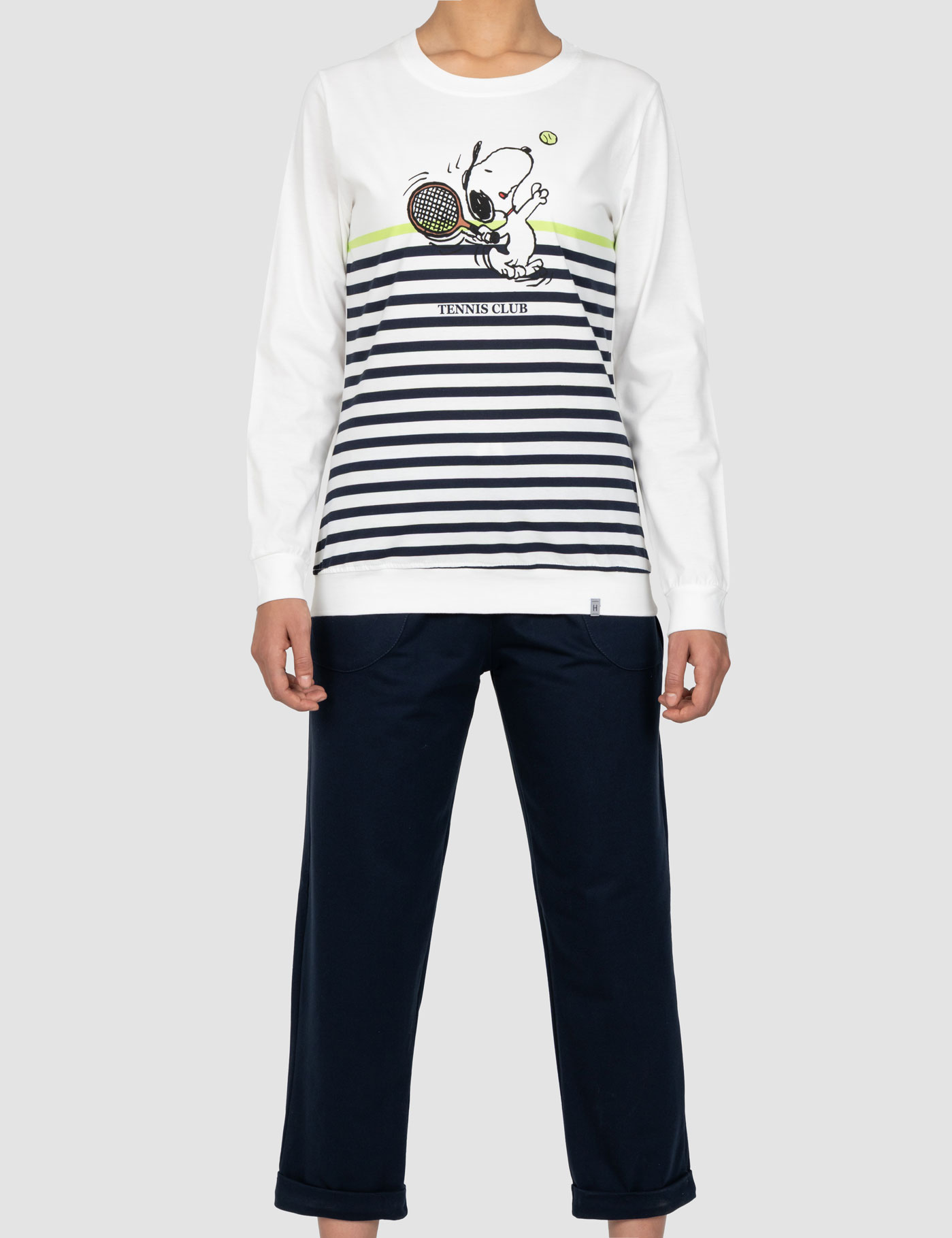 با بلوز چاپدار اسنوپی و تنیس از همین مجموعه ست کنید تا استایلی هماهنگ، اسپرت و پرانرژی داشته باشید.