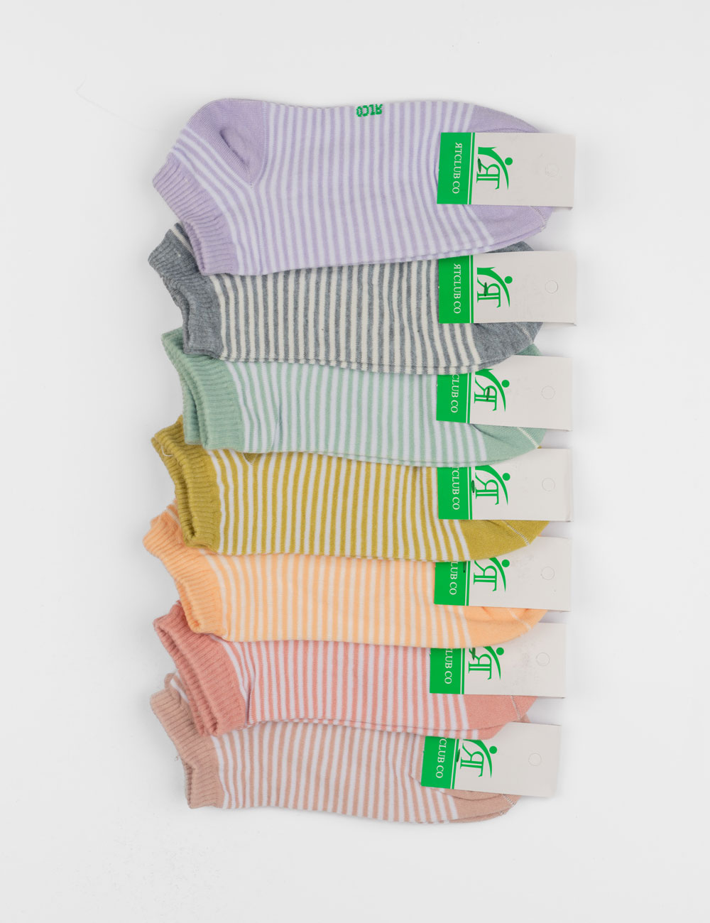 جوراب زنانه مچی راهراه سفید، با طراحی اسپرت و خطوط ظریف روی زمینه سفید، انتخابی ساده و شیک برای استایلهای روزمره است. بافت پنبهای نرم و تنفسپذیر آن، راحتی پا را در طول روز تضمین میکند و مدل مچی، ظاهری مرتب و کاربردی ایجاد میکند.