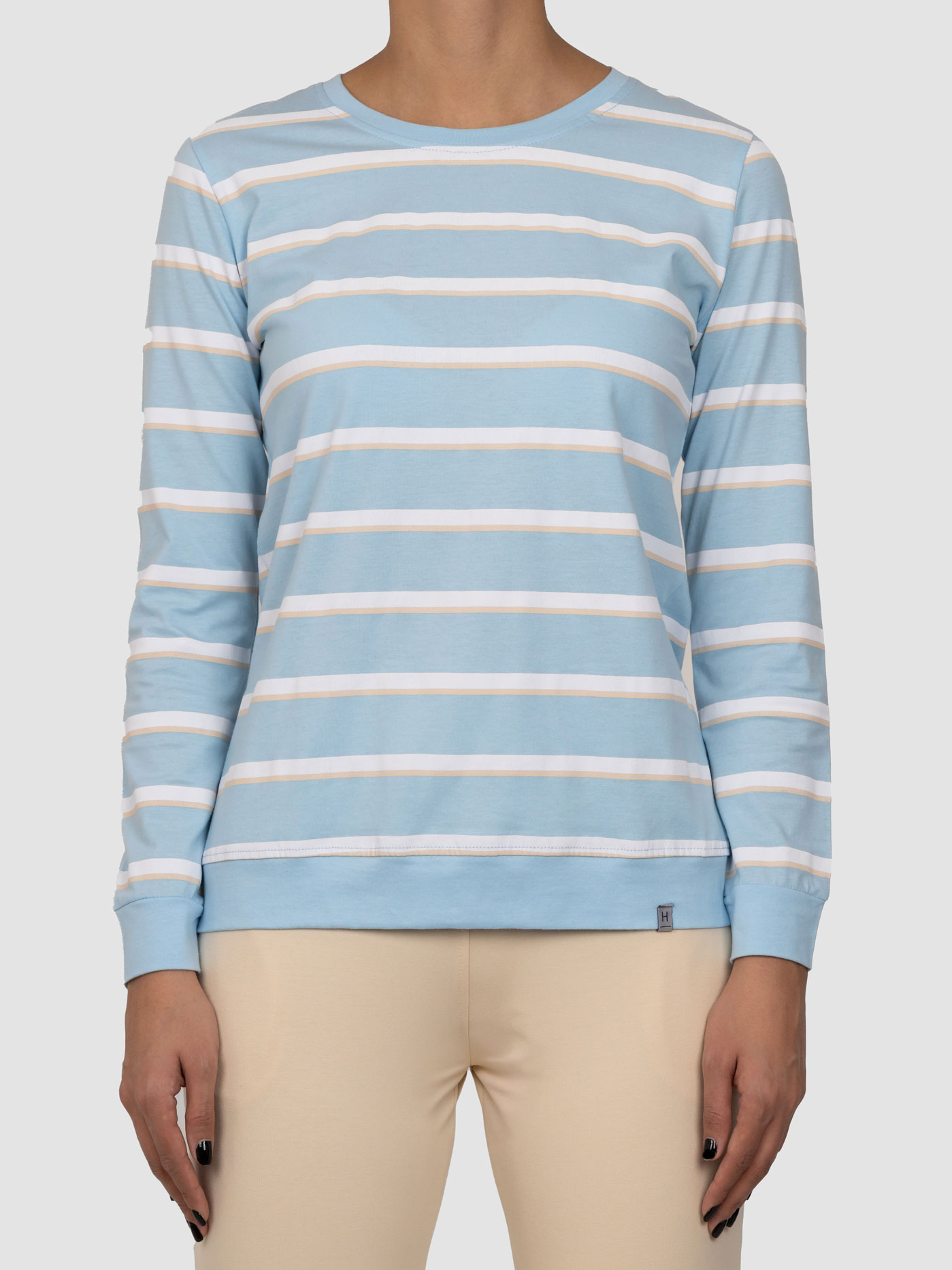 بلوز زنانه راهراه ژیکان از برند هیوان، با طراحی کلاسیک و رنگ آرامشبخش آبی روشن، انتخابی زیبا و کاربردی برای استایلهای روزمره است. پارچهی نرم و سبک آن باعث میشود در تمام فصول، بهویژه پاییز و زمستان، احساس راحتی و لطافت داشته باشید.